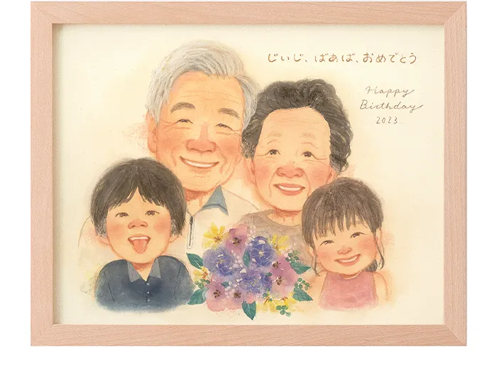 届いた日に私と夫だけは先に似顔絵を見て、2人で「わー!わー!いいなぁ!これは良いなー!」と2人で感激しました!!