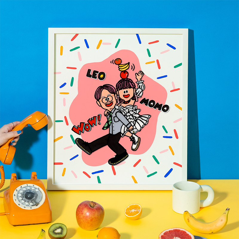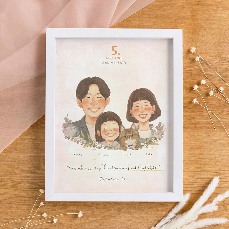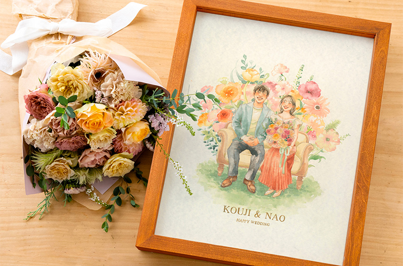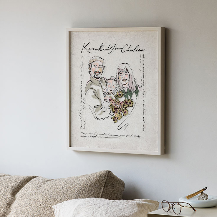 お家の中に、ふたりの仲良しな姿の似顔絵が飾ってあれば、ケンカした時や離れて過ごす時も心がなごみ、改めてお互いを大切に思うことができるインテリアにもなります。