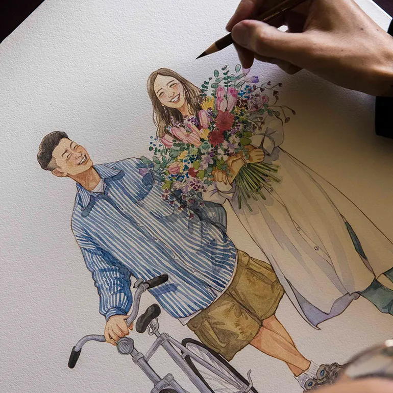 その想いを緻密に描き、いつまでも色褪せることのない、お二人だけの一枚をお届けします。