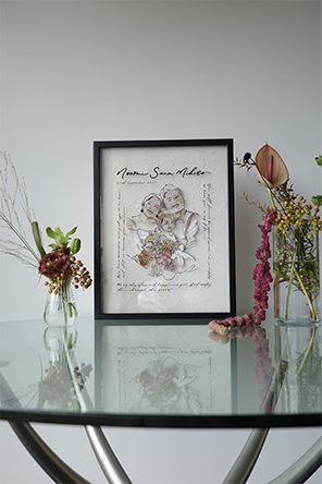 ebisuさんの絵柄もすごく気に入ってくれて、早速一緒に購入した額縁に入れて飾ってくれていました。