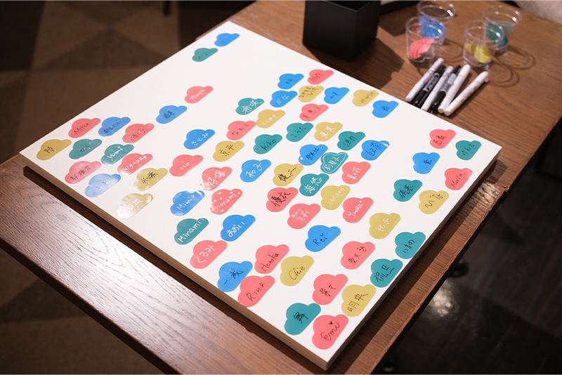 当日は、ゲスト参加型の結婚証明書、ウェルカムボード、プロフィールブックとフル活用させていただき、
