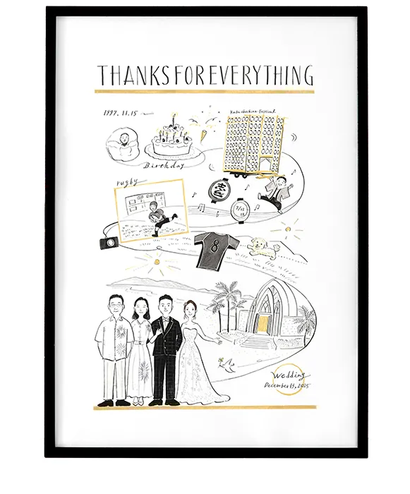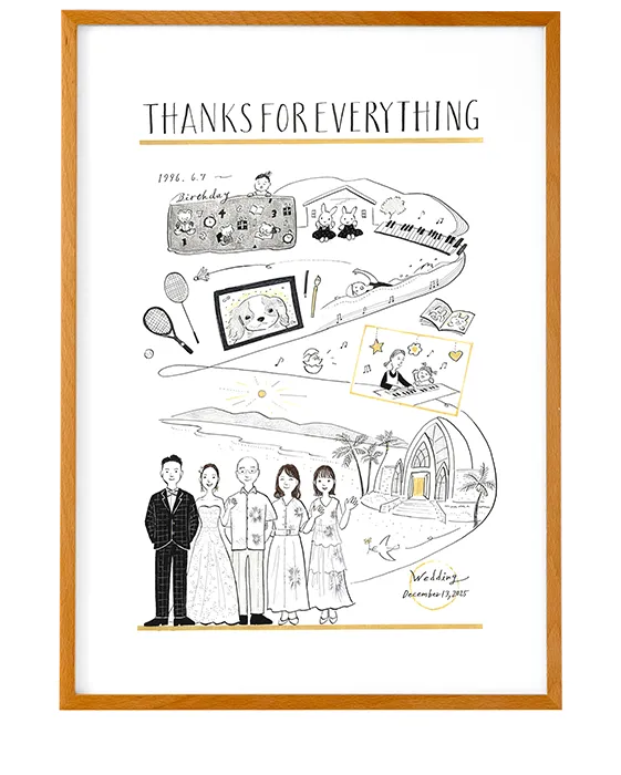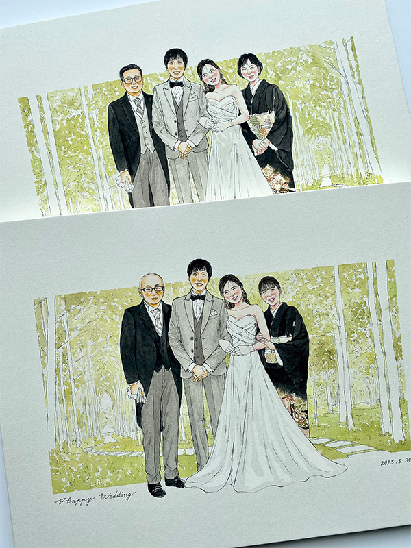 ふたつの家族がひとつになる結婚式。家族が繋がる似顔絵を贈りませんか?