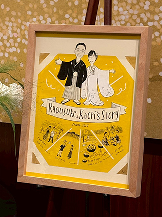 お二人の思い出やこだわりを詰め込めるnokamiの似顔絵で、お二人らしくゲストをお出迎えしませんか?
