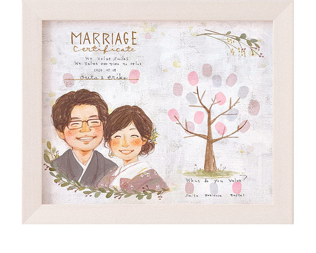 最後に、新郎新婦の誓いの証を入れると、想いがこもった結婚証明書が完成します!