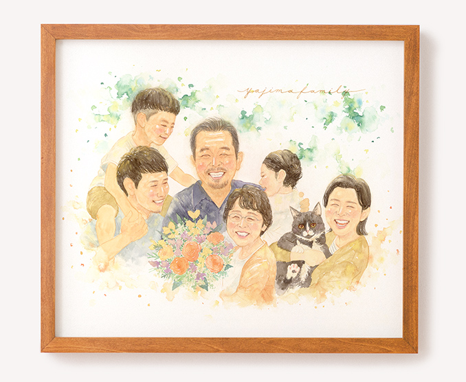 透明水彩ならではのやさしくあたたかい雰囲気で、描かれる人の幸せな空気感まで一緒に描きます。絵を見るたびに、ほっと心がやわらかくなるようなそんな一枚でありますように。