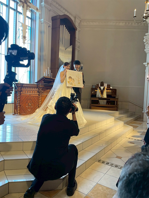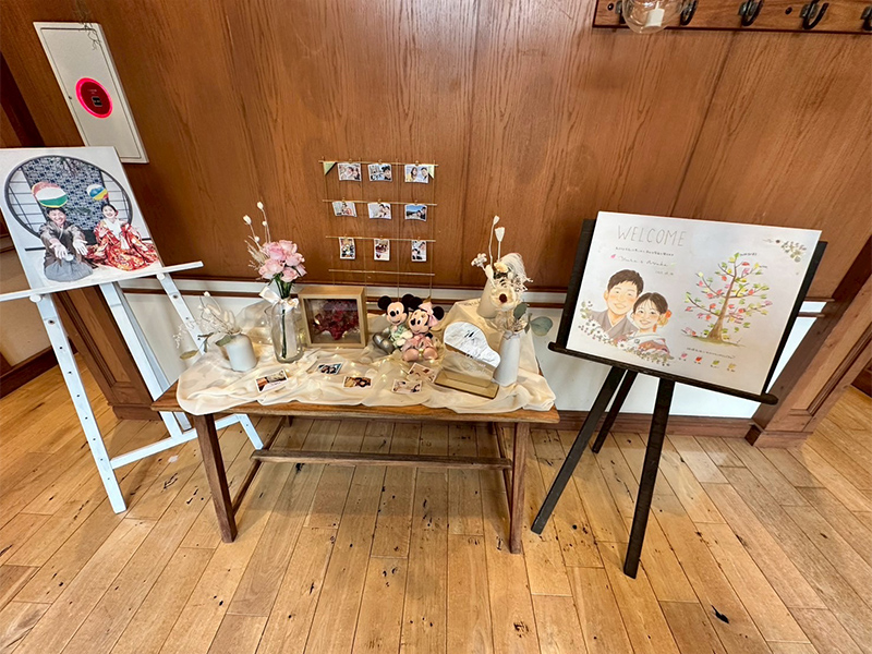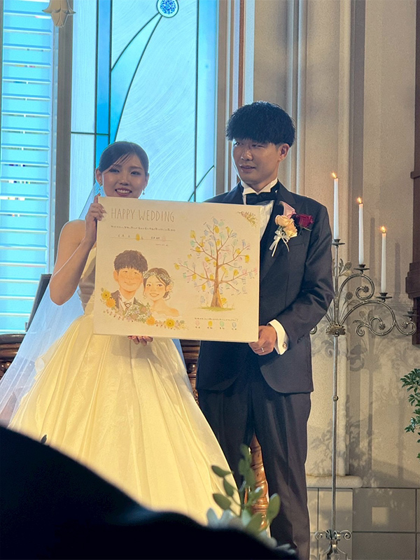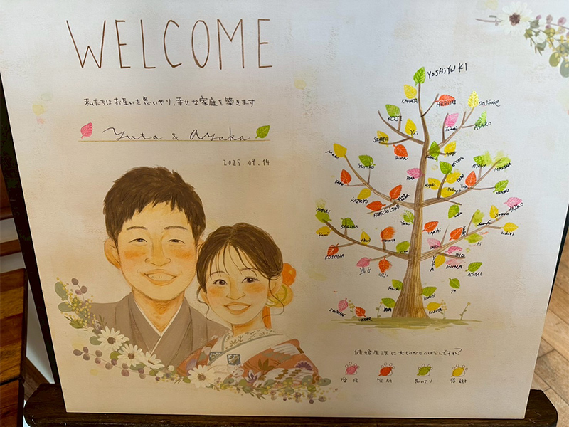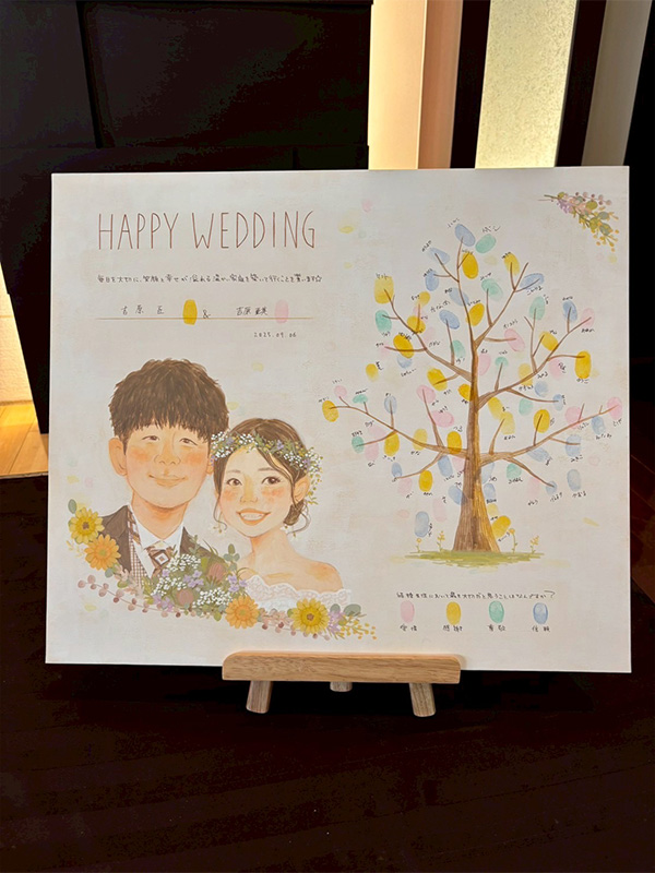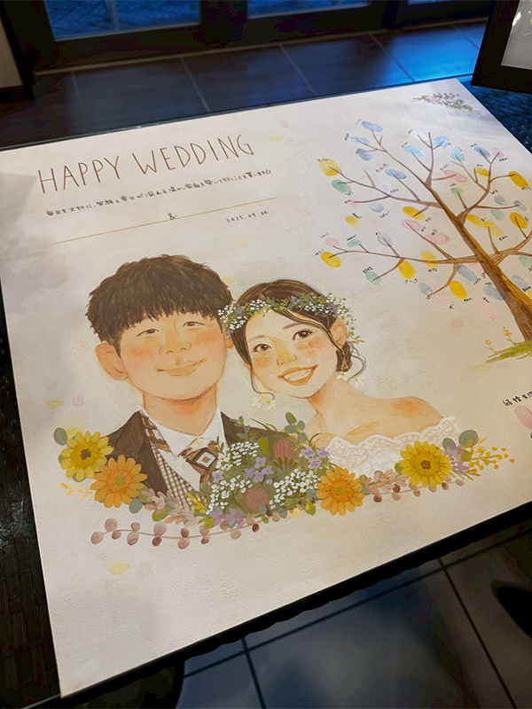 オプションの「プリント似顔絵」も一緒に飾れば、ゲストにもわかりやすいウェディングツリーの説明書にも。