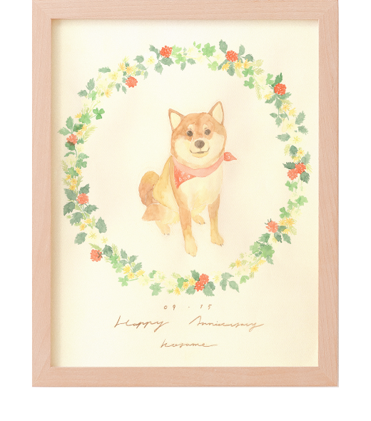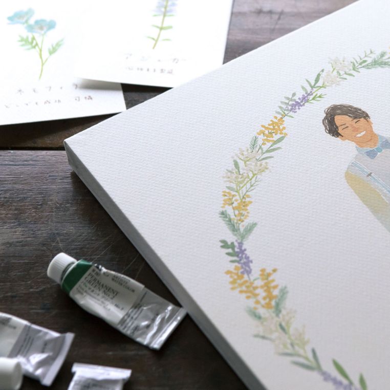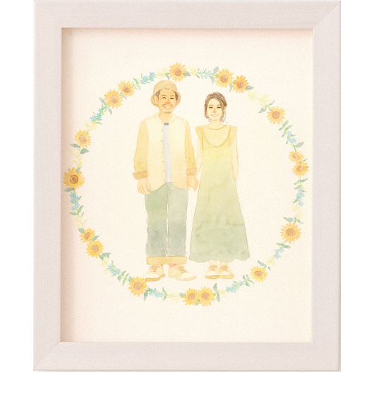 はちさんの絵は、ふわっとした柔らかい色合いと、水彩絵具の優しい雰囲気に惹かれてオーダーしました。想像以上に素晴らしい作品が届き、正直驚いています。この度はこのように素敵な作品を描いていただき本当にありがとうございました。