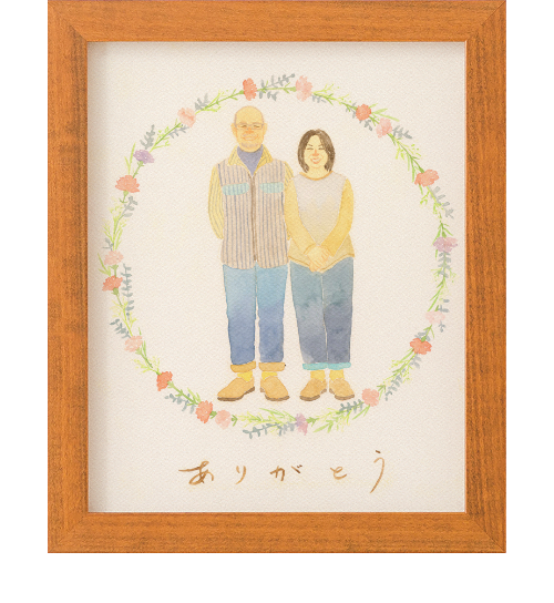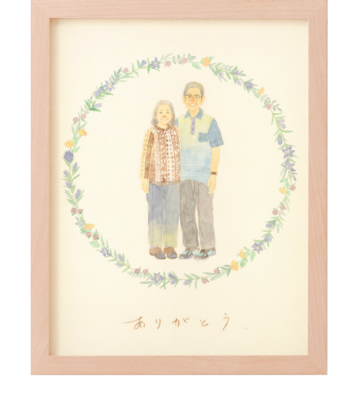 そのため両親が大切に守ってきてくれたこの家族を柔らかな雰囲気を持った形としては残しにくかったのですが、このように絵として形に残すことができ両親もとても喜んでいました。