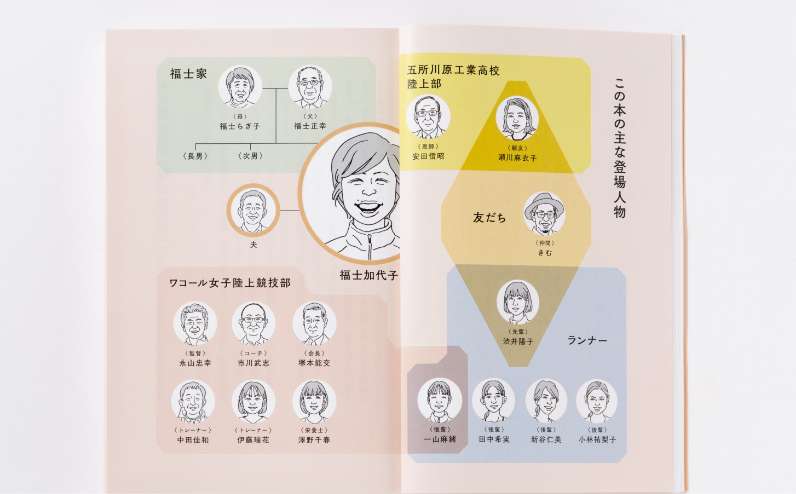 日本陸上界のレジェンド福士加代子さんと、福士さんの人生に関係する方々の相関図に使用する似顔絵を描かせていただきました。
