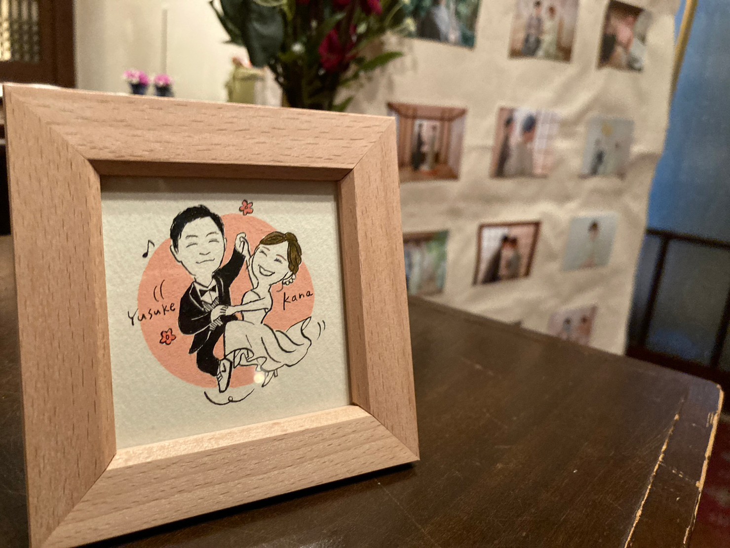 先日、ancoさんの似顔絵の席札を使用させていただき、無事に結婚式を挙げることができました。