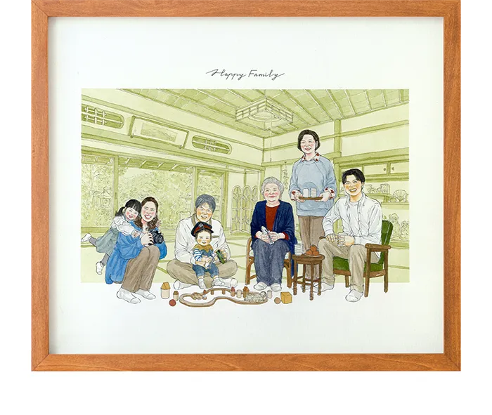 離れて暮らしていても、似顔絵があればみんなの笑顔をいつもそばに感じられます。