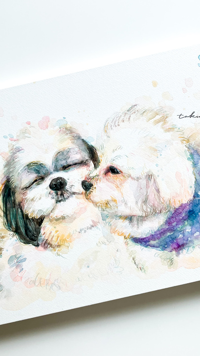 似顔絵と一緒にインテリアとしてマッチするイラストができました。作家ごとに書き下ろしたイラストは似顔絵との相性バッチリ。