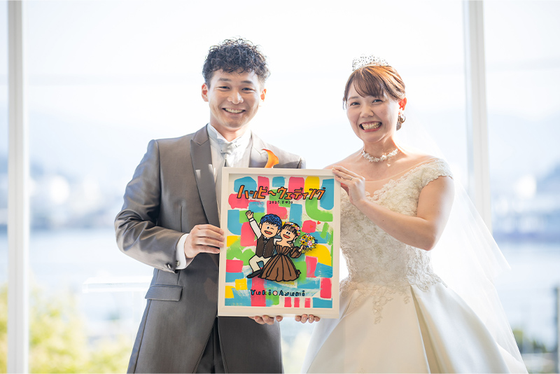 ぐりこさんの素敵なイラストで結婚式がさらにポップになりました。