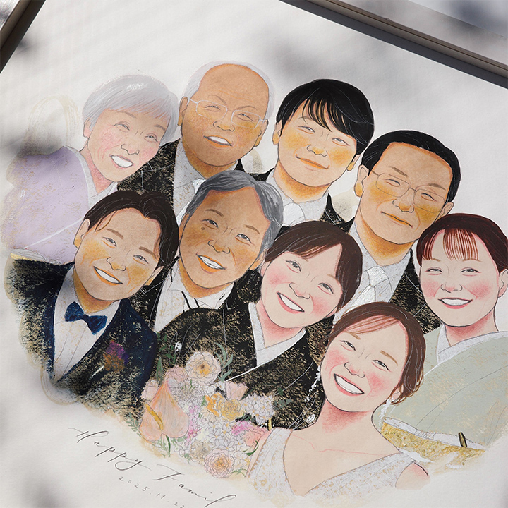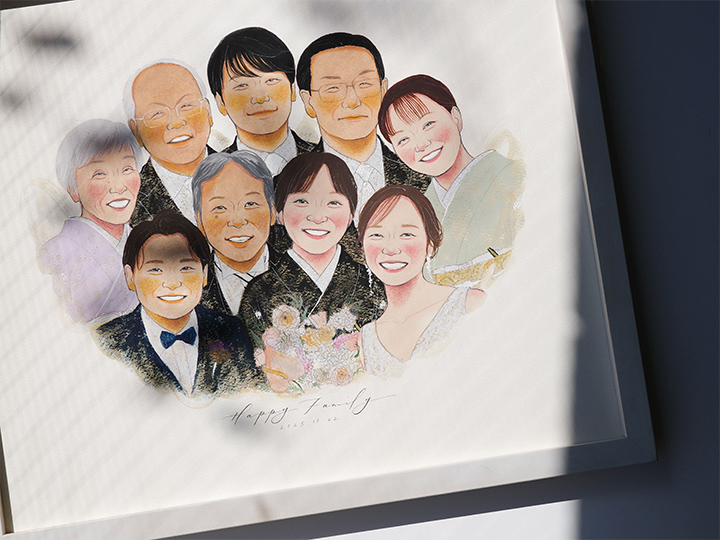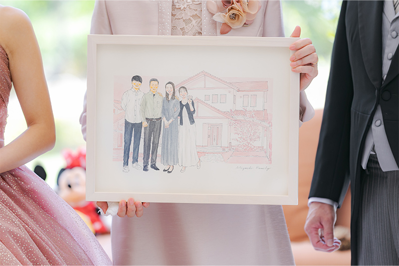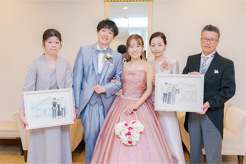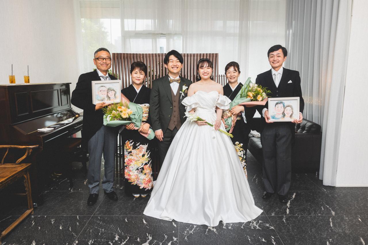 ふたつの家族がひとつになる結婚式。家族が繋がる似顔絵を贈りませんか?